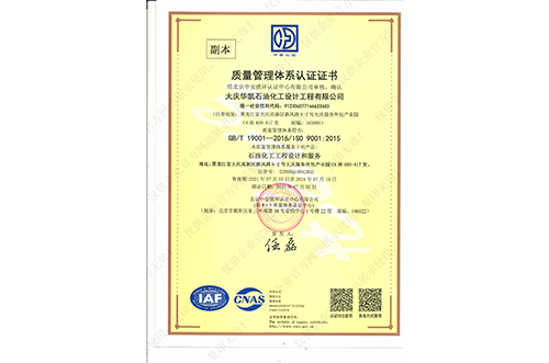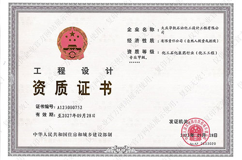 我公司具有化工工程專業(yè)甲級(jí),石油及化工產(chǎn)品儲(chǔ)運(yùn)、煉油工程、管道輸送、油田地面、制漿造紙工藝、城鎮(zhèn)燃?xì)夤こ獭⒔ㄖこ桃壹?jí)設(shè)計(jì)資質(zhì),石化、建筑乙級(jí)咨詢資質(zhì),并通過(guò)了ISO9001質(zhì)量管理體系的認(rèn)證、環(huán)境管理體系認(rèn)證和職業(yè)健康安全管理體系認(rèn)證,具有Ⅰ、Ⅱ、Ⅲ類壓力容器設(shè)計(jì)資格證及壓力管道設(shè)計(jì)資格證。