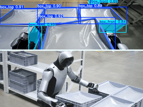 第一,自研視覺編碼器基座,構(gòu)建精準環(huán)境感知。優(yōu)必選以ViT作為視覺編碼器原型,結(jié)合Co-DETR檢測頭,依托Object 365等開源數(shù)據(jù)在通用視覺任務(wù)上進行預(yù)訓(xùn)練,并通過多階段模態(tài)對齊機制實現(xiàn)了視覺-語言模態(tài)的高效融合。最終,在優(yōu)必選機器人數(shù)據(jù)集上進行微調(diào),顯著提升機器人在工業(yè)場景中對物體、障礙和操作上下文的識別能力,為復(fù)雜環(huán)境下穩(wěn)定可靠的多模態(tài)環(huán)境感知奠定了堅實基礎(chǔ)。